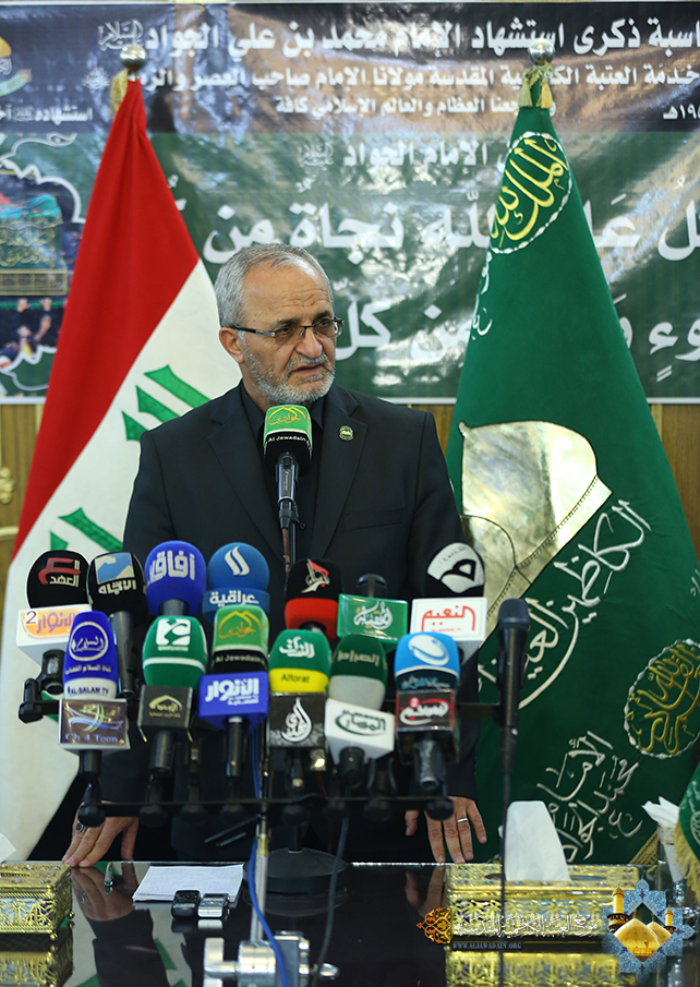 عقد الأمين العام للعتبة الكاظمية المقدسة أ.د (جمال الدباغ) مؤتمراً صحفياً في مقر الأمانة العامة، استعرض فيه أهم النشاطات والجهود التي بذلت في مراسم إحياء ذكرى استشهاد الإمام محمد بن علي الجواد (عليه السلام)، وأعلن خلال هذه التغطية الصحفية عن انتهاء مراسم الزيارة مع استمرار توافد جموع الزائرين الكرام لرحاب الصحن الكاظمي الشريف، وبلغ عدد الوافدين لهذه الزيارة المباركة ما يزيد على مليوني زائر دخلوا الصحن الكاظمي الشريف، كما صرح بأن عدد المواكب الحسينية المشاركة في أحياء هذه الزيارة و تقديم الخدمات للزائرين الكرام بلغ أكثر من (500) موكباً وبعضها من محافظات اخرى كالنجف الأشرف وكربلاء المقدسة والكوفة والقاسم, وأما عن التغطية الإعلامية والبث المباشر لهذه المناسبة الأليمة فقد كان على مدى خمسة أيام متواصلة من خلال إذاعة الجوادين وتلفزيون الجوادين في العتبة الكاظمية المقدسة، حيث ارتبطت عشرين قناة فضائية مع البث المباشر للعتبة ،وكان هذا الارتباط من خلال خمسة اقمار بث . كما قدم وافر شكره إلى المرجعية الدينية العليا والجهات التي ساهمت في تقديم ما يمكنها من خدمات ومن بينهم ديوان الوقف الشيعي والعتبات المقدسة وبالأخص العتبة العباسية المقدسة والجهات الأمنية باختلاف تشكيلاتها وصنوفها والدوائر الخدمية, ومنها دائرة بلدية الكاظمية ودوائر الصحة والمرور فضلاً عن وسائل الإعلام المختلفة ودورها البارز في هذه المناسبة ونقلها للأحداث والشعائر والمجالس العزائية التي أقيمت في رحاب الصحن الكاظمي الشريف وكذلك منظمات المجتمع المدني ، كما تقدم بجزيل الشكر إلى أهالي محافظة بغداد وأبناء مدينة الكاظمية الكرماء وخَدَمَة العتبة المقدسة الذين ساهموا بشكل كبير في خدمة زائري الإمامين الجوادين (عليهما السلام) ،والشكر موصول الى الزائرين الافاضل الذين استجابوا لإرشادات تنظيم الزيارة سواء كانت من الجهات الامنية أم من العتبة المقدسة مما كان له الاثر البالغ في انسيابيتها بشكل ممتاز.