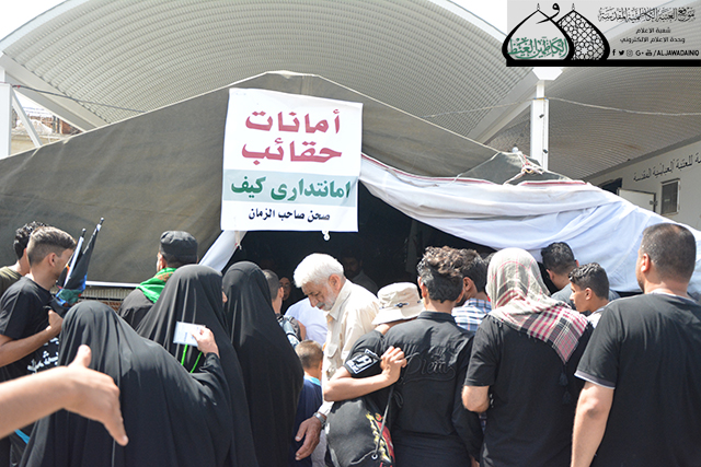 شرع قسم خدمة الزائرين في العتبة الكاظمية المقدسة كعادته في كلّ عام بإعداد خطة خدمية جديدة لتحقيق انسيابية عالية في تأدية المهام وتوفير أقصى درجات الراحة للزائرين الوافدين إلى الصحن الكاظمي الشريف لإحياء ذكرى استشهاد الإمام الزاهد العابد موسى بن جعفر "عليه السلام"، وعن طبيعة تلك الجهود تحدث السيد احسان جواد كاظم رئيس قسم خدمة الزائرين قائلاً: عقدت وحدات قسم خدمة الزائرين العزم على أداء مهامها حيث عملت وحدة الأمانات والمفقودات في تهيئة المخيمات بمساحات كبيرة في شارعي أمير المؤمنين وصاحب الزمان "عليهما السلام" المخصصة لتسلم حقائب الوافدين وحاجياتهم، فضلاً عن تهيئة وتأهيل محطات تسلم أجهزة الهاتف النقال المتواجدة في جميع مداخل العتبة المقدسة.
