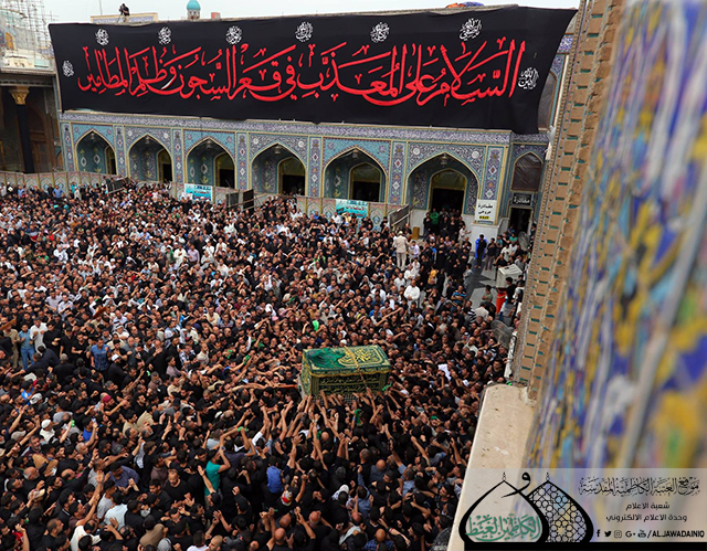 جُلجلت القيود ودوت الأصفاد لتُنذر بصداها العالم الإسلامي قدوم ذكرى استشهاد رهين السجون والمغيّب في ظلم المطامير الإمام موسى بن جعفر الكاظم "عليه السلام", وما كان للملايين من الموالين والمحبين إلا التلّبية والسعي الحثيث من كل حدب وصوب قاصدين جنته ومرقده الشريف إحياءً لذكراه الأليمة ومعزين لحفيده صاحب العصر والزمان الإمام المهدي "عجل الله فرجه الشريف"، حيث شهدت مدينة الكاظمية المقدسة صباح يوم الخميس الخامس والعشرين من شهر رجب الأصب 1439هـ الموافق 12/4/2018 مراسم التشييع الرمزي لنعش الإمام موسى بن جعفر الكاظم "عليه السلام"، عبر مسيرة إيمانية صدحت فيها هتافات الولاء متجهة صوب الصحن الكاظمي الشريف، ليستُقبل بالخشوع والهيبة وذرف الدموع من قبل المعزين في الرحاب الطاهرة للحرم الشريف، وحضر هذه المراسم الأليمة الأمين العام للعتبة الكاظمية المقدسة الأستاذ الدكتور جمال عبد الرسول الدباغ وأعضاء مجلس الإدارة وعدد من الشخصيات الدينية والاجتماعية وخدّام الإمامين الجوادين "عليهما السلام" بمشاركة الحشود المليونية الزاحفة إلى مرقد الإمامين الكاظمين"عليهما السلام" والتي استمر توافدها على مدى أيام عدّة من داخل العراق وخارجه، كما شهدت المراسم قراءة قصة استشهاد إمام الأخيار وصاحب السكينة والوقار موسى الكاظم"عليه السلام" من قبل فضيلة الشيخ أحمد الربيعي، واختتمت بقراءة المراثي والقصائد العزائية بمشاركة خادم الإمامين الجوادين الرادود كرار الكاظمي، وقراءة زيارة الإمام موسى بن جعفر "عليه السلام" والدعاء لشعبنا الأبي الصابر بالأمن والأمان وللزائرين الكرام بسلامة العودة إلى ديارهم سالمين غانمين وإلى قواتنا الأمنية بالنصر والظفر.