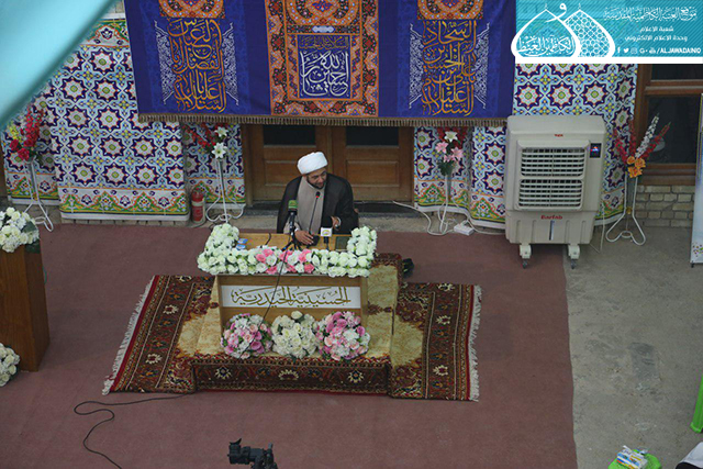 استهل الحفل بتلاوة مباركة من كتاب الله العزيز عطَّر بها أسماع الحاضرين قارئ العتبة الكاظمية المقدسة الحاج هُمام عدنان، تلاها محاضرة دينية لفضيلة الشيخ عبد الله الكعبي، استعرض فيها محور الكرامات التي حدثت عند ولادة مجمع النورين الإمام الحسين "عليه السلام"، وأشار المحور الثاني إلى القِيم والشِيم التي تحلّت بها شخصيته "عليه السلام"، وضرورة اعتمادها في تنظيم الإنسان لعلاقته مع الخالق والمخلوق، وأوضح فضيلته في المحور الثالث حقل التشريع والتكوين، حين استثنى الإمام الحسين "عليه السلام" من بين جميع الخلائق والمعصومين مفسراً قول رسول الله "صلى الله عليه وآله وسلم": ( حسين منّي وأنا من حسين أحب الله من أحب حسيناً ).