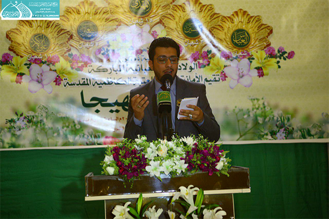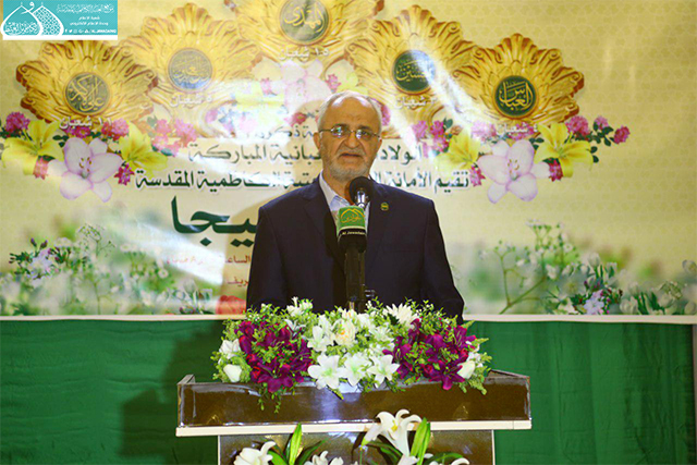 بعدها ارتقى المنصة الخطيب الحسيني سماحة الدكتور السيد صفاء الفحام وألقى محاضرة دينية قيّمة بهذه المناسبة قائلاً فيها: تَطل علينا في هذه الأيام الشعبانية المباركة ذكريات عطرة، لا بد من أن نغترف من ضفاف مجد ومعين هذه الكواكب المضيئة في سماء الإسلام وأن نضع أمامنا صوراً رائعة يحتذى بها في مسيرة الحياة تقتبس من النفوس المضيئة بنور النبوة والإمامة، إذ نقف أولاً عند ولادة الإمام الحسين "عليه السلام" الذي تجلّت فيه صور الثبات والإباء على الحق، عندما إعده جده رسول الله "صلى الله عليه وآله" إعداداً رسالياً لتحمل أعباء المسؤولية، وأشار في حديثه إلى الإمام زين العابدين "عليه السلام" الذي ينبغي أن نتعلم منه كيف يكون جهاد النفس، وعلى وجه الخصوص في هذه المرحلة بعد ما طوينا مرحلة الجهاد الأصغر بفضله تعالى وانتهاء صفحة الإرهاب التكفيري، علينا أن نتوجه بأنفسنا إلى الجهاد الأكبر جهاد النفس، ثم توجه في حديثه إلى مستودع الإيمان والشجاعة والكرامة والإيثار المولى أبي الفضل العباس مسلطاً الضوء على شذرات من مواقفه الفذّة التي حافظت على المسيرة التكاملية للإسلام. بعدها تألقت فرقة إنشاد الجوادين بمجموعة من الأناشيد الدينية، وكان للشاعر الدكتور عادل الكاظمي مشاركة بقصيدة رائعة ومنها هذه الأبيات: