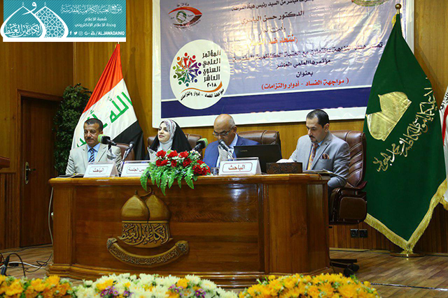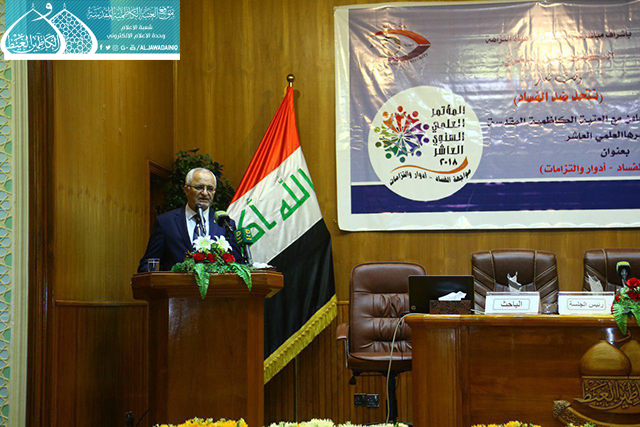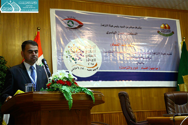 انطلاقاً من الفكر الإيماني والقيم الإنسانية التي أكد عليها أئمة الهدى "عليهم السلام"، وسعي الأمانة العامة للعتبة الكاظمية المقدسة في نشر رسالتها والمساهمة في تحقيق النزاهة ومكافحة الفساد المستشري في مفاصل المؤسسة الحكومية، والذي أمسى ظاهرة اجتماعية سيئة الصيت، وبالأحرى جريمة رسخت جذورها العميقة في نفوس وسلوك البعض من موظفيها، استضافت الأمانة العامة للعتبة الكاظمية المقدسة في رحاب الصحن الكاظمي الشريف يوم الأثنين 23/4/2018 المؤتمر العلمي السنوي العاشر بعنوان: (مواجهة الفساد ـ أدوار والتزامات) الذي أقامته هيأة النزاهة بالتعاون مع العتبة الكاظمية المقدسة تحت شعار : ( نتحد ضد الفساد )، بحضور الأمين العام للعتبة الكاظمية المقدسة الأستاذ الدكتور جمال عبد الرسول الدباغ وأعضاء مجلس الإدارة ورئيس هيأة النزاهة الدكتور حسن الياسري وعدد من رؤساء الجامعات والمفتشين العموميين ونخبة من الاساتذة الأكاديميين والباحثين وموظفي هيئة النزاهة وخدّام العتبة المقدسة، استهلت الندوة بتلاوة آيٍ من الذكر الحكيم شنّف بها قارئ العتبة الحاج منير عاشور أسماع الحاضرين ثم قراءة سورة الفاتحة المباركة أهدي ثوابها إلى أروح شهدائنا الأبرار، بعدها ارتقى المنصة رئيس هيأة النزاهة الدكتور حسن الموسوي وتحدث عن دور الهيأة وما قامت به من ثورة توعوية كبرى من خلال عقد مؤتمراتها وندواتها المستمرة بالتعاون مع الجامعات والمؤسسات الأكاديمية العراقية، والتي سلّطت الضوء على قضايا الفساد بشتى أشكاله، كما وبيّن أن النظر للفساد عبر التاريخ بنظرة مزدوجة، فليس الإسلام وحده من حارب الفساد بل جميع الشرائع السماوية أقرّت بذلك، مستشهداً بذلك بقول أمير المؤمنين علي بن أبي طالب "عليه السلام": (شرف المرء نزاهته)، وأكد الياسري أن حركة الإصلاح لا تتحقق في المجتمع إلا بوجود الإنسان المُصلّح ذي القدرة على التمييز بين الحقّ والباطل، وتوافر مقومات الإصلاح عملياً لا شعاراتياً، للوصول إلى غاية القضاء على الفساد المالي والإداري والسياسي والمجتمعي.