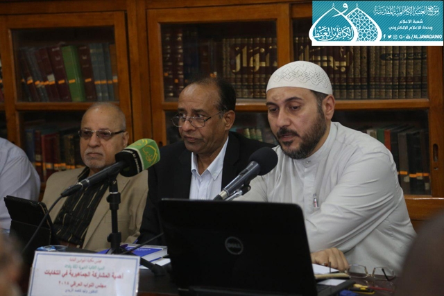 عَقَدَ المجلس الثقافي في مكتبة الإمامين الجوادين العامة في العتبة الكاظمية المقدسة عصر الخميس 3 آيار 2018 ندوته الثالثة بعد المائة بعنوان: ( أهمية المشاركة الجماهيرية في انتخابات مجلس النواب العراقي 2018)، بحضور نخبة طيبة من الباحثين والأكاديميين والمهتمين بالشأن الثقافي. افتتحت الندوة بتلاوة آيات بينات من الذكر الحكيم شنّف بها قارئ العتبة المقدسة السيد عبد الكريم قاسم أسماع الحاضرين، بعدها استعرض الدكتور وليد كاصد الزيدي ورقة بحثية حول طبيعة الانتخابات التي سيشهدها العراق في 12/5/2018، وبيّن أهمية المشاركة في الانتخابات وذلك لما لها من آثار إيجابية نحو التغيير ورسم خارطة التقدم والاستقرار.
