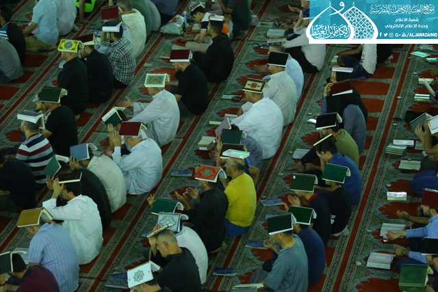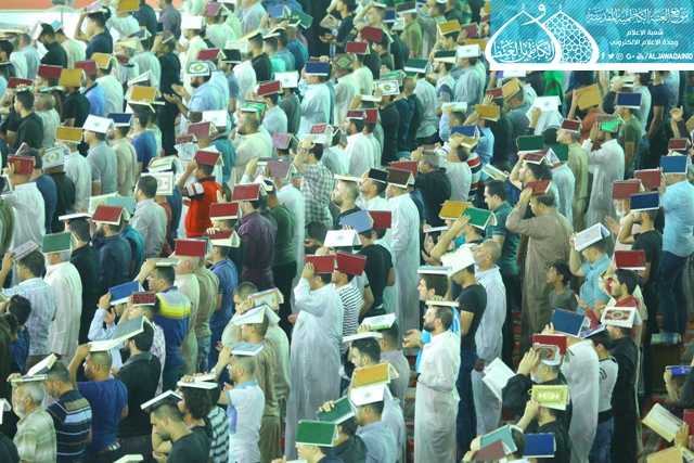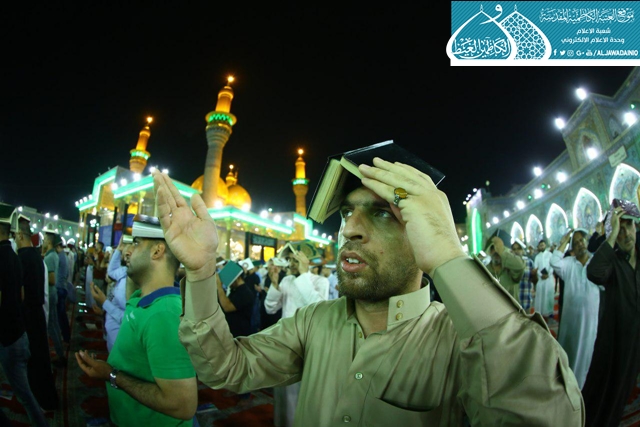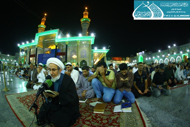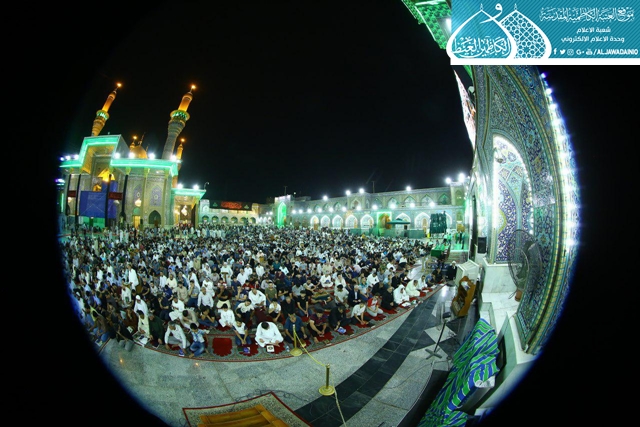 ثم ابتهلت الجموع المؤمنة التي غصّت بها هذه الرحاب الطاهرة إلى المولى العلي القدير أن يتقبل منها خالص الدعاء والأعمال في هذه الليلة وسائر الليالي والأيام، وينصر قواتنا الأمنية والحشد الشعبي، وأن ينعم على بلدنا العراق بالخير والأمن والأمان.