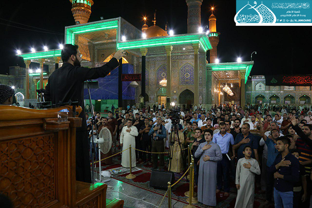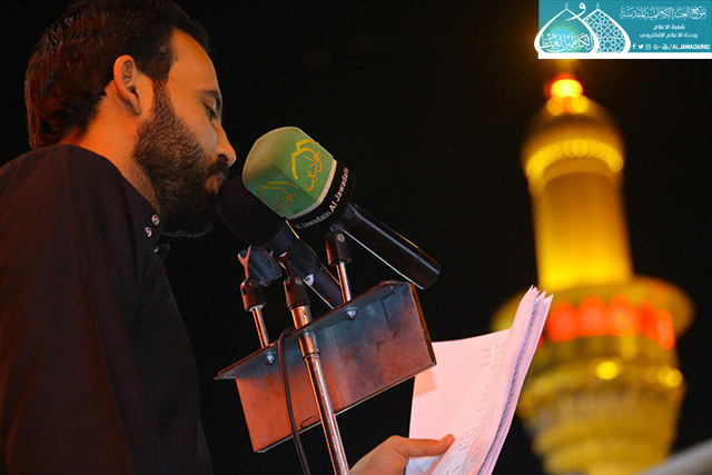 كما شهدت مجالس العزاء مشاركة مجموعة من رواديد العتبة الكاظمية المقدسة في قراءة القصائد والمراثي حيث صدحت حناجرهم بالحب والولاء لإمام المتقين "عليه السلام".