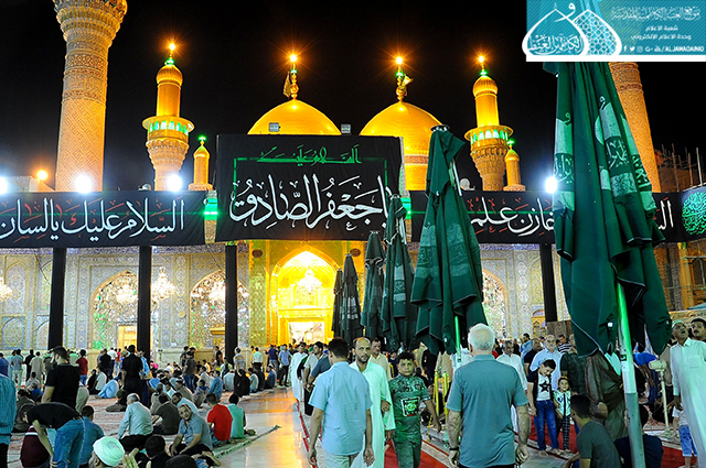 وكان في استقبال المعزين جمع من خدّام العتبة المقدسة، وتقام هذه المجالس لتوكيد الأهداف الروحية والاجتماعية ذات المضامين العالية التي رسخها إمامنا الصادق "عليه السلام" بمواقفه الصُلبة في الدفاع عن العقيدة والرسالة الإسلامية.