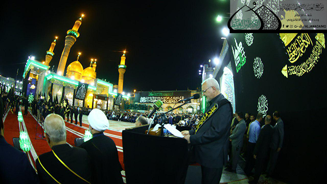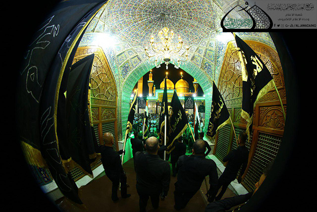 وسط أجواء يسودها الحزن والأسى وتضوع بالحب والولاء للنبي الأكرم محمد وأهل بيته الأطهار"عليهم السلام" وقفت الجموع الموالية في رحاب الصحن الكاظمي الشريف حداداً على المصيبة الراتبة التي أفجعت قلوب الموالين ألا وهي ذكرى استشهاد نور الهدى الإمام محمد بن علي الجواد "عليه السلام"، حيث أقامت الأمانة العامة للعتبة الكاظمية المقدسة المراسم السنوية لاستبدال الرايات الخضراء التي تعلو القبتين الشامختين للإمامين الجوادين "عليهما السلام" برايات العزاء والحزن السوداء، بحضور الأمين العام للعتبة الكاظمية المقدسة الأستاذ الدكتور جمال عبد الرسول الدباغ وأعضاء مجلس الإدارة وخدّام الإمامين الجوادين وممثلي خدّام العتبات المقدسة والمزارات الشريفة وممثلي دوائر ديوان الوقف الشيعي وعدد من القيادات الأمنية وشخصيات دينية واجتماعية وجمع غفير من الزائرين.