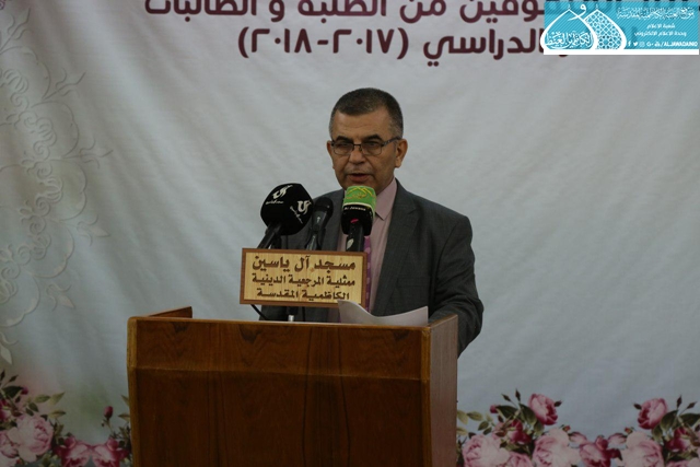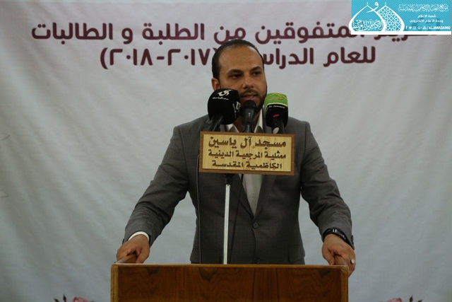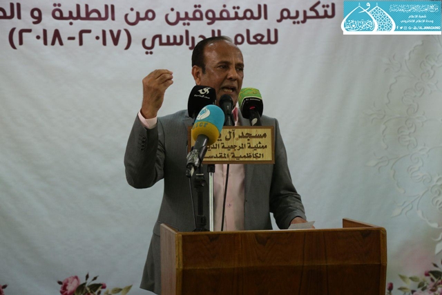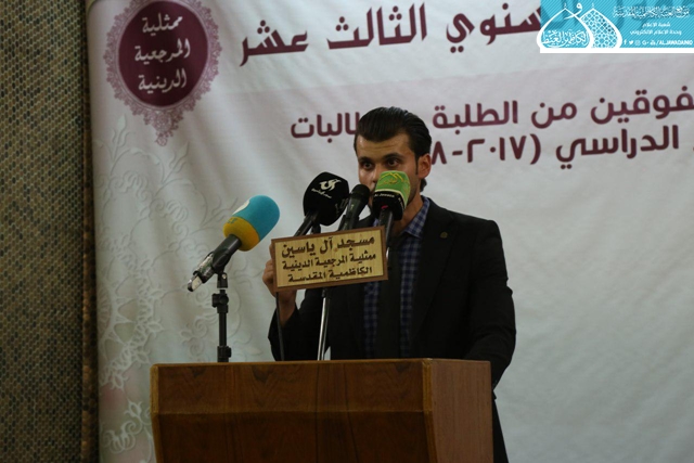ثم ألقى الطالب سنان أحمد لطفي كلمة الطلبة جاء فيها: ( نتقدّم بوافر الشكر والامتنان إلى ممثلية المرجعية الدينية في الكاظمية المقدسة لقاء الجهد الكبير والعمل المميز في دعم الأوائل ورعايتهم، وإشاعة أجواء التفوق والاهتمام بالكفاءات العلمية لدفع عجلة التقدّم والرقيّ والإزدهار).