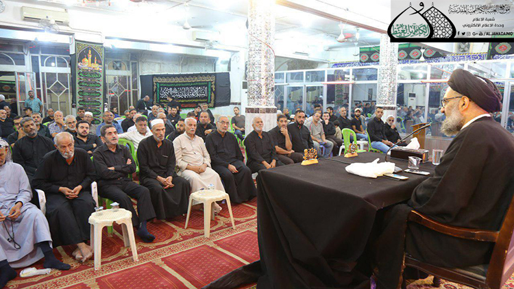 خدّام العتبة الكاظمية المقدسة يحضرون الندوة الفكرية والثقافية المُنعقدة في حسينية الهادي " الچلبي" بمدينة الحرية