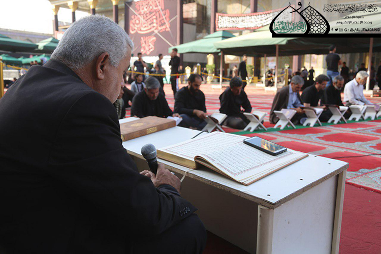 الزيارة الأربعينية .. زيارة مليونية كبيرة ومباركة، وينبغي استثمارها خير استثمار، ومع استمرار توافد جموع الزائرين إلى رحاب الإمامين الكاظمين "عليهما السلام"، نظّم دار القرآن الكريم التابع إلى قسم الشؤون الفكرية والإعلام في العتبة المقدسة جلسات الختمة القرآنية والتي يُهدى ثوابها إلى أبي الأحرار الإمام أبي عبد الله الحسين وأهل بيته وأصحابه الأبرار، لنشر ثقافة ومواعظ القرآن الكريم وتصحيح القراءة بين صفوف الزائرين الكرام وتزودهم ببركات الذكر والتقوى والمغفرة وهم ينطلقون بمسيرتهم متوجهين نحو كربلاء الحسين "عليه السلام".