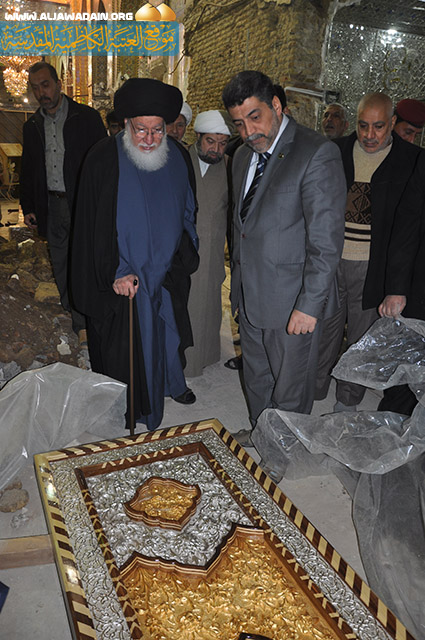 قام سماحة آية الله الفقيه السيد حسين الصدر دام ظله الوارف بزيارة العتبة الكاظمية المقدسة حيث استقبل من قبل السيد الأمين العام الحاج فاضل علي الانباري وعدد من السادة أعضاء مجلس الإدارة .. وبعد ان أدى سماحته مراسم الزيارة والدعاء تحت قبة الإمامين الكاظمين عليهما السلام قام بصحبة السيد الأمين العام والسادة أعضاء مجلس الإدارة بجولة تفقدية في أرجاء العتبة المقدسة اطلع فيها على بعض مشاريع الاعمار الجارية ومنها مشروع اعمار باب المراد واكساء جدران الطارمة بالمرمر وأبدى إعجابه بأسلوب البناء المتبع حيث شاهد ( الكنلات ) وهي ممرات هوائية تستحدث للحفاظ على البناء الأصلي . وشكر سماحته عقب انتهاء جولته التفقدية جهود السادة المشرفين على الاعمار وكذلك خدمة الامامين (عليهما السلام) العاملين في المشروع وسعيهم الدائب من اجل إظهار العتبة الكاظمية بالمظهر اللائق بها ثم اختتم سماحته زيارته مودعا بمثل ما استقبل به من حفاوة وتكريم .