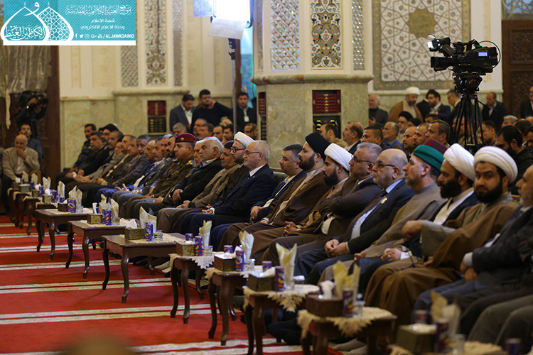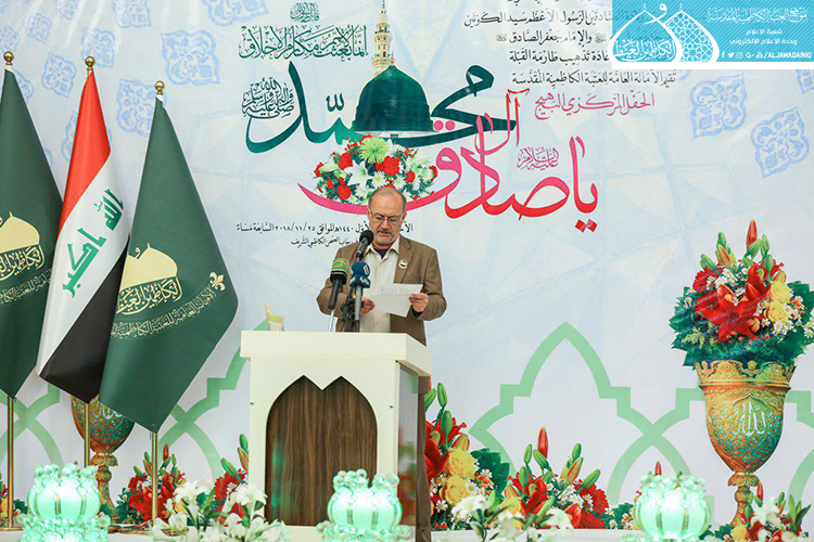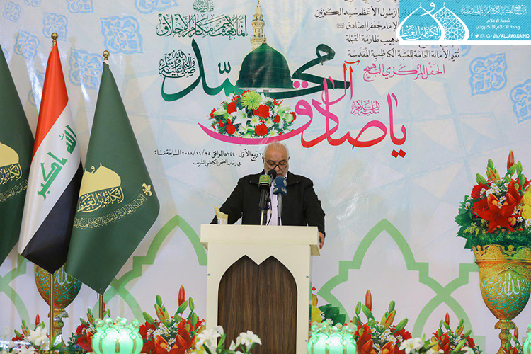 تلتها كلمة العتبة الكاظمية المقدسة وألقاها أمينها العام الأستاذ الدكتور جمال عبد الرسول الدباغ قائلاً: " عندما نحتفلُ بذكرى ولادةِ خاتمِ الأنبياءِ محمدٍ المصطفى " صلى الله عليه وآله وسلم"، فإنَّ هذا يعني أننا نحتفلُ بولادةِ القدوةِ المتمثلَةِ بالأنموذجِ الأمثلِ للإنسانِ الكاملِ، والمنظومةِ الأخلاقيةِ الكاملةِ المهداةِ إلى العالمِ أجمعَ، فإنّ اللهَ تعالى ادّخرَهُ ليختِمَ بهِ أنبياءَهُ ورسلَهُ ويختِمَ بهِ رسالاتِهِ، ويكونَ شاهداً على أمتِهِ وجميعِ الأممِ.