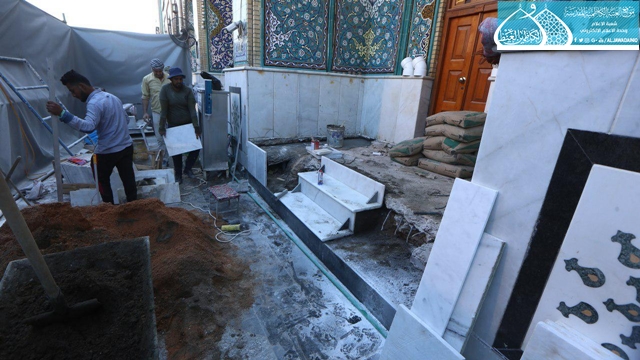 تواصل الملاكات الفنية في قسم الشؤون الهندسية في العتبة الكاظمية المقدسة جهودها في مشروع صيانة وترميم الغُرف الداخلية في الصحن الكاظمي الشريف.
