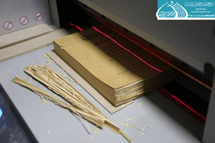 وأضاف: ان هذه المؤلفات تحتاج إلى دقة متناهية في التعامل معها وذلك لقِدمِها حيث تجاوزت أعمارها عقوداً من الزمن، وأغلبها كانت في مكتبات لشخصيات دينية وعلمائية تبرّع بها أصحابها ومتوليها إلى العتبة الكاظمية المقدسة للحفاظ على تلك النتاجات المعرفية، وأغلب تلك المؤلفات تعرّضت إلى عوامل التلف الطبيعية والخارجية، حيث تولّى عددٌ من الخدم مهمة المعالجة بطرق فنية حديثة، تم تأهيل ما يقارب (425) كتاباً لحد الآن، بعد مرورها بمراحل عدّة بدءً من جمع الرزم المتفككة، وتثبيت ورق "الكارب"، وانتهاءً بصناعة الغلاف الخارجي وتركيبه.