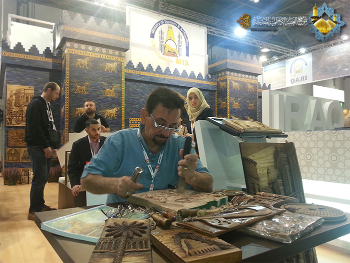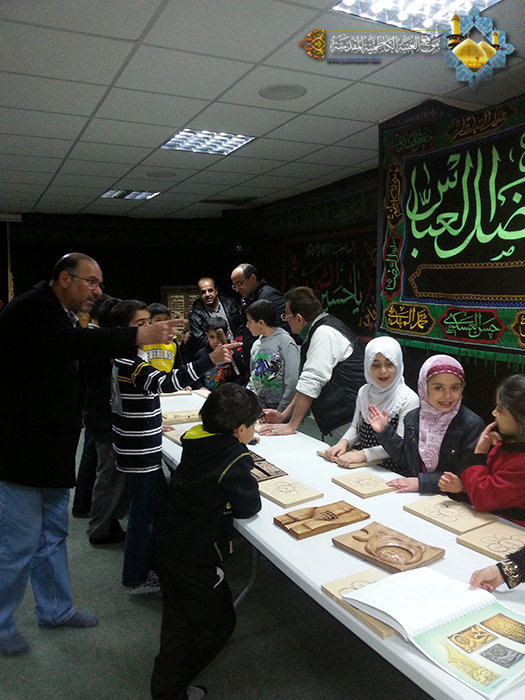 واستعرض الفنان النقاش أعماله الفنية التي جسدت الأقوال المأثورة لأهل البيت (ع)، موضحاً للحضور إن هذه الأقوال قد نقشت في قلبه قبل أن تنقش على الخشب، وأصبحت منهاجاً مباركاً في حياته، كما أبدى ارتياحه للفرصة التي أتيحت له لتعليم مجموعة من الفتية والشباب فن النحت والنقش على الخشب في المركز المشار إليه، وذلك من خلال الدورة التدريبية التي أقيمت في هذا المركز، ودار خلال هذا اللقاء حوار جميل أجاب خلاله على جملة من الأسئلة التي وجهت إليه. وفي ختام اللقاء توجه الفنان النقاش بالشكر الجزيل والعرفان والامتنان للحضور المبارك، على حسن الاستقبال والضيافة، مبدياً إعجابه لما لمسه من محبة وتماسك وتعاون بين أبناء الجالية العراقية الكريمة، وتمسكهم بالشعائر الدينية والعادات والتقاليد العراقية الأصيلة، وإصرارهم على تعليم أبنائهم اللغة العربية والقرآن الكريم، كما قدم شكره وامتنانه الوافر لجميع من ساهم في إنجاح هذه المشاركة وتهيئة الفرصة المباركة. من جانبه توجه القنصل العراقي الدكتور (إحسان علاوي حسين) بالشكر والامتنان للعتبة الكاظمية المقدسة، وللفنان المبدع الأستاذ (إبراهيم النقاش) ودعواته له بالتوفيق للمشاركة في معارض عالمية أخرى.