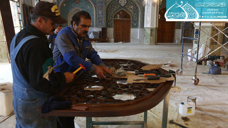 في إطار أعمال التسقيف الجارية في العتبة الكاظمية المقدسة، التي ستوفر مساحات إيمانية وعبادية جديدة، نظراً لإزدياد أعداد الزائرين الوافدين إلى هذه البقعة المطهرة، شهد مشروع مسقف الصحن الكاظمي الشريف من الجهة الشرقية أعمال نصب الأبواب الخشبية المتميزة بجودتها وبروعة نقوشها الإسلامية، فضلاً عن أعمال تنظيف النقوش النباتية والمرايا والمعرّق لأعمدة وفضاءات المسقف، حيث أن العمل جارٍ على قدم وساق ويسير بصورة متوازية لجميع أعمال الإنهاءات الكهربائية، ووفق ما مخطط لهُ، متغلباً على جميع المصاعب التي قد تشكل عائقاً أمامه، وذلك بفضل الله تعالى وببركة الإمامين الجوادين "عليهما السلام".