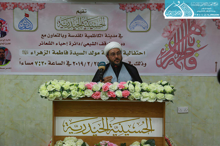 واستطرد في حديثه بيان مقامها "عليها السلام" في القرآن والسُنة الشريفة من خلال الآيات والروايات التي تؤكد فضلها ومنزلتها، مؤكداً على وجوب التأسي والإفادة من الدروس والعِبر المستقاة من سيرتها الاجتماعية والتربوية التي لها الأثر البالغ في تكوين الأسرة المسلمة.