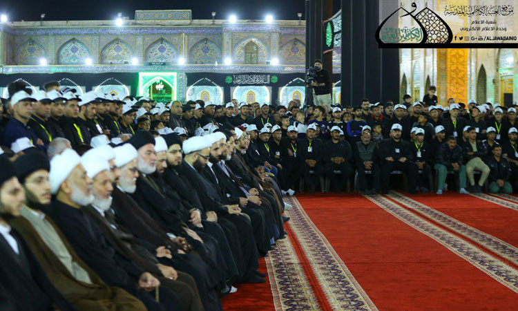 وأضاف سماحته هذه هي رسالة المشروع التبليغي في الحوزة العلمية الشريفة إذ يأتي بخدمتكم جميعاً بفضلاء الحوزة وأساتذتها وطلّابها كما عوّدكم بالتذكير بالقيم العظيمة للإسلام، وإجابة المسائل الشرعية المختلفة والاستماع إلى هموم الناس متوكلاً على الله تعالى مستنداً إلى المرجعية المباركة، ومدعوماً من إدارة العتبات المقدسة مع الإشارة الخاصة للأمانة العامة للعتبة الكاظمية المقدسة في هذه المناسبة محبّاً لأرواحكم ونسأل الله تعالى أن يتقبّل من الجميع أعمالهم وزيارتهم وبكائهم وتفجّعهم لمصائب آل محمد "عليهم السلام").