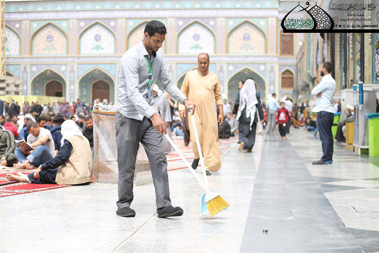 لأجل توفير الخدمات اللازمة للزائرين الكرام والحفاظ على نظافة الصحن الشريف أعدّت ملاكات شعبة النظافة التابعة لقسم خدمات العتبة المقدسة آلية عمل جديدة شهدها هذا الموسم بدأت قُبيل استقبال المناسبة الأليمة لاستشهاد الإمام موسى بن جعفر الكاظم "عليه السلام"، من خلال عملية تنظيمية إذ تم توزيع فرق النظافة في صحون العتبة المقدسة كافة أضافت تحسين جودة العمل.