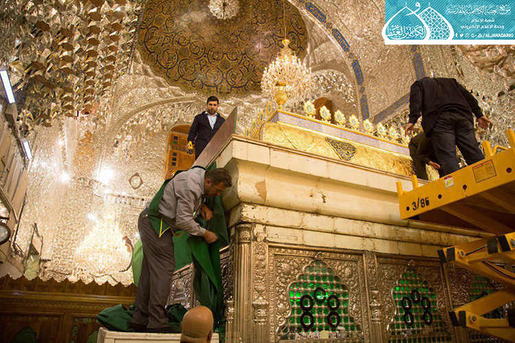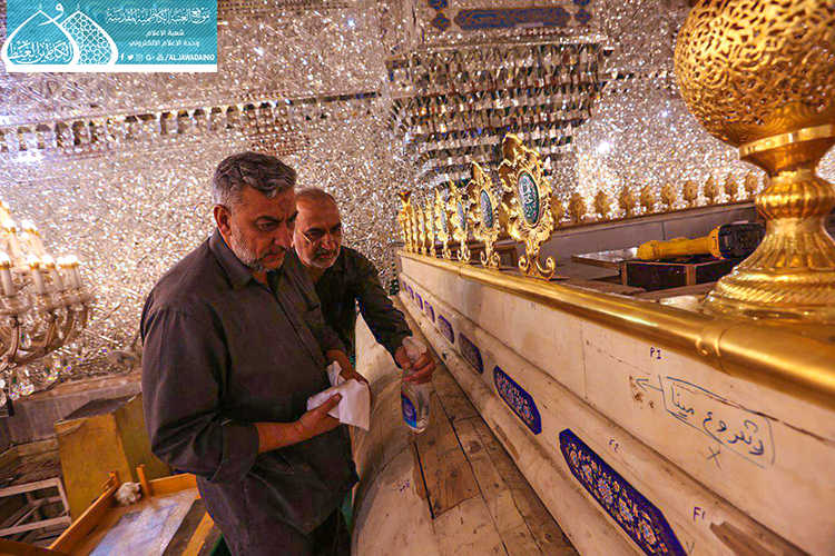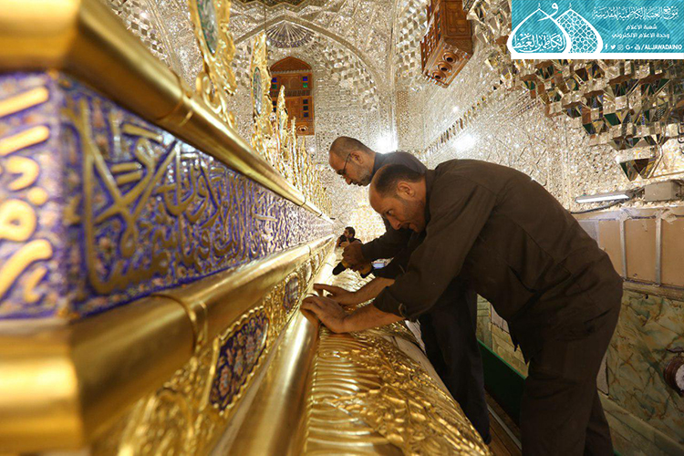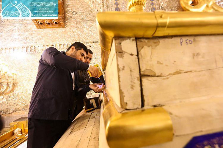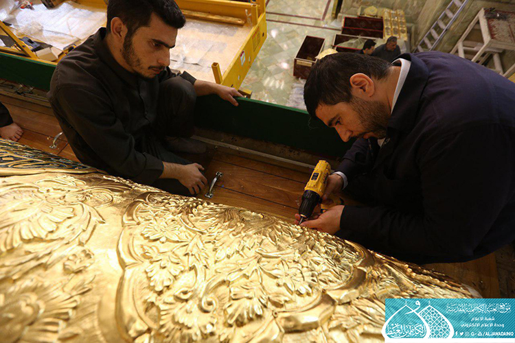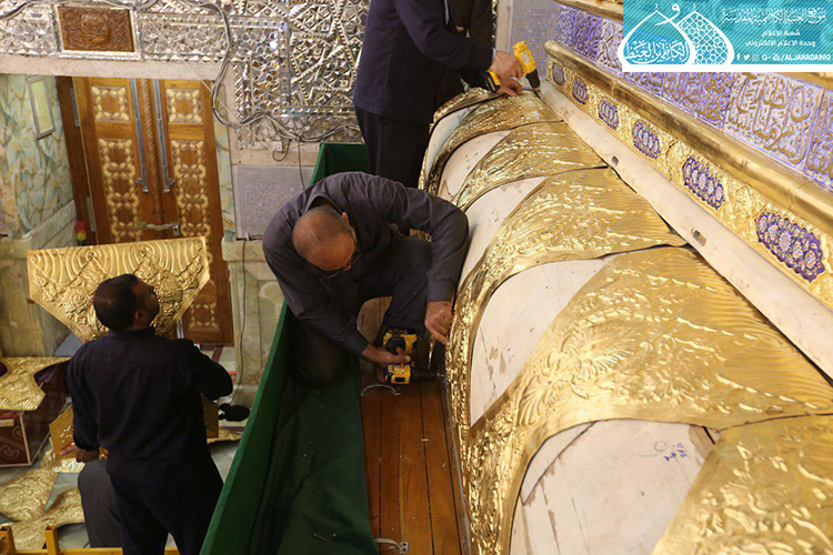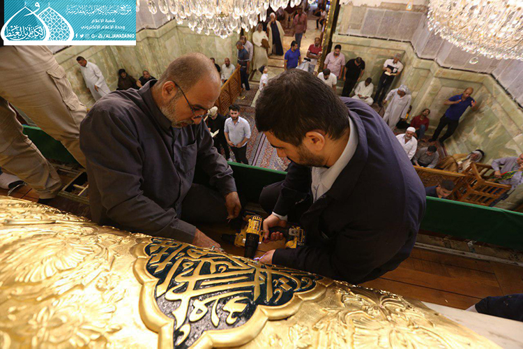 قام فريق مَصنع السقّاء الخاص بصناعة الشبابيك والأبواب للمراقد المقدسة التابع للعتبة العباسية المقدسة وبالتعاون مع الملاكات الفنيّة في العتبة الكاظمية المقدسة بأعمال نصب وتركيب الأجزاء العلوية لشبّاك ضريح الإمامين الجوادين "عليهما السلام" بعد صيانتها وإعادة تذهيبها.