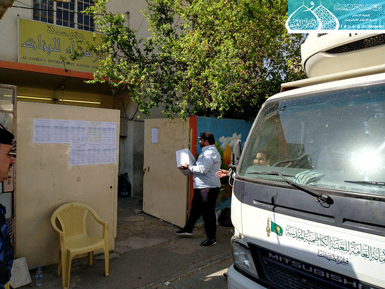 ساهمت الأمانة العامة للعتبة الكاظمية المقدسة، وبالتعاون والتنسيق مع المديرية العامة لتربية محافظة بغداد الكرخ/ الثالثة بتوزيع كميات من مياه المراد الصحية على المراكز الامتحانية، حرصاً منها في توفير الأجواء المناسبة لطلبة المرحلة المنتهية في (صفّ السادس الإعدادي) وتذليل بعض الصعاب التي يواجهها طلبتنا الأعزاء، والتخفيف من معاناتهم وسط الارتفاع الشديد بدرجات الحرارة ، وهم يؤدون امتحاناتهم الوزارية النهائية.