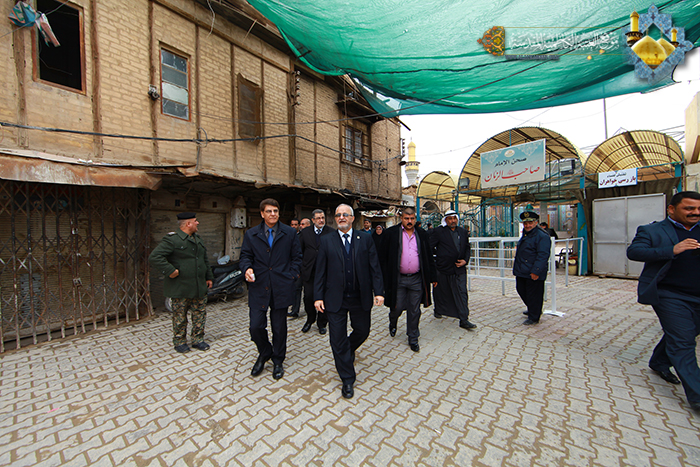 عقد في رحاب العتبة الكاظمية المقدسة الاجتماع الخامس لتطوير المنطقة المحيطة بالصحن الكاظمي الشريف، صباح يوم الثلاثاء 4/2/2014م في القاعة الحمزة بن عبد المطلب (عليه السلام)، وترأس الاجتماع نائب الأمين العام لمجلس الوزراء لشؤون الوزارات والمحافظات السيد(رحمن عيسى حسن) وبحضور الأمين العام للعتبة الكاظمية المقدسة أ. د(جمال الدباغ) وعدد من مسؤولي وممثلي الجهات والدوائر المعنية في إدارة أعمال مشروع التطوير وهي الأمانة العامة لمجلس الوزراء/دائرة المتابعة والتنسيق الحكومي ودائرة التصاميم والدائرة القانونية في أمانة بغداد ودائرة بلدية الكاظمية ودائرة التراث في وزارة السياحة والآثار وآمرية اللواء الثامن/الشرطة الاتحادية ومديرية التسجيل العقاري في الكاظمية، افتتح الاجتماع بتلاوة مباركة من كتاب الله العزيز شنف بها أسماع القارئ السيد(عبد الكريم قاسم) أسماع الحاضرين بعدها تحدث الأمين العام للعتبة الكاظمية المقدسة أ.د(جمال الدباغ) مرحباً بالحضور مشيداً ومباركاً بجهود الحثيثة المقدمة من قبل الدوائر المذكورة وتواصلها من أجل خدمة الإمامين الجوادين(عليهما السلام) وزائريهم الكرام، بعدها تم تقديم عرض موجز من قبل أمانة بغداد والأعمال الجارية في المشروع ومناقشة التصاميم المقترحة لتطوير المنطقة المحيطة للصحن الكاظمي الشريف و شارعي أمير المؤمنين علي بن ابي طالب (عليه السلام) والذي يبلغ عرضه (40م) وشارع الإمام الحجة (عجل الله تعالى فرجه الشريف) وبعرض(60م)، كما تحدث آمر اللواء الثامن/الشرطة الاتحادية عن أهم التدابير الأمنية التي ستتخذ خلال فترة انجاز المشروع, وعرضت دائرة التراث أهم الأعمال التي قامت بها دائرتهم خلال الفترة السابقة، وقدمت العتبة الكاظمية المقدسة بعض المقترحات التي تخدم عملية التطوير لأجل الارتقاء بمستوى الإنجاز. وبعد اختتام جلسة الاجتماع قام السادة المسؤولين بجولة ميدانية اطلعوا خلالها على المراحل الأولية للمشروع والأعمال الجارية فيه.