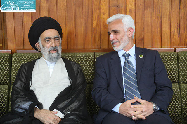 سماحة السيد هادي المُدرسي يهنئ الأستاذ الدكتور حيدر الشمّري لمناسبة تسنّمه منصب الأمين العام للعتبة الكاظمية المقدسة
