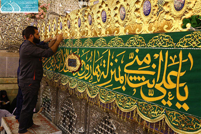تيمّناً بيوم العهد المعهود عيد الغدير الأغر، عمّت فضاءات الصحن الكاظمي الشريف البهجة والسرور ابتهاجاً بهذه المناسبة المباركة، إذ قام خدّام الإمامين الجوادين "عليهما السلام" بنشر الكلمات النورانية على الضريح الشريف وأعمدة وأواوين الصحن الكاظمي الشريف استعداداً للحفل المركزي البهيج الذي ستقيمه الأمانة العامة للعتبة الكاظمية المقدسة يوم الثلاثاء 18 ذي الحجة 1440 هـ الموافق 20 آب 2019 بدعوة عامة للجميع، انطلاقاً من قول إمامنا جعفر الصادق "عليه السلام": ( إن تلك المجالس أحبها .. فأحيوا أمرنا، رحم الله من أحيا أمرنا).