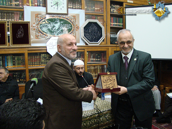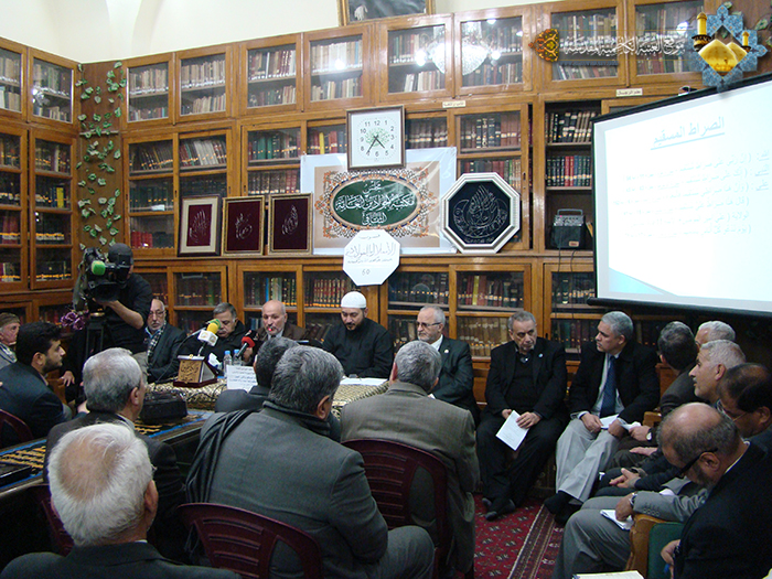 عقدت بمكتبة الجوادين(عليهما السلام) العامة في الصحن الكاظمي الشريف الندوة الثقافية الشهرية الحادية والستون مساء يوم الخميس 6/2/2014م بعنوان (الصراط المستقيم والنور المبين في القرآن العظيم) للباحث أ. د (بشير كاظم كنعان)، بحضور الأمين العام للعتبة الكاظمية المقدسة أ.د (جمال الدباغ) وأعضاء مجلس الإدارة والعديد من الشخصيات الدينية والعلمية والثقافية والأكاديمية، حيث استهلت الندوة بتلاوة مباركة من الذكر الحكيم تلاها القارئ (سامر الأنباري)، بعدها تحدث رئيس الجلسة سماحة الشيخ(عماد الكاظمي) وقدم فيها عنوان الندوة والتعريف بالسيرة الشخصية للباحث، ثم استعرض مقدمته الذي اعتمد فيها الباحث على تفسير القرآن بالقرآن لكشف المعاني العميقة وتجميع الآيات المشتركة، والأدعية والزيارات للكشف الواضح والعميق من كلام المعصومين، وتطبيقات العلوم الطبيعية النظرية الحديثة واستخدامها في معرفة فهم معاني القرآن الكريم والزيارات والأدعية وتطبيقاتها العملية في الحياة اليومية. بعدها ألقى أ. د (بشير كاظم كنعان) بحثه وتطرق فيه حول فضائل (سورة الفاتحة) المكية المدنية في القرآن الكريم وأسباب نزولها ووجوبها في الصلاة والكشف عن أسرار الكثير من مفرداتها، مبيناً محاورها الرئيسة (التوحيد، والصراط المستقيم، ويوم الدين)، ووضح من خلالها معرفة الهادي والهداية، واصفاً (الصراط المستقيم) بالموصل إلى مرضاة الله والجنة وذلك من خلال استدلاله بالآيات الكريمة بِسْمِ اللّهِ الرَّحْمنِ الرَّحِيمِ (يس، وَالْقُرْآنِ الْحَكِيمِ، إِنَّكَ لَمِنَ الْمُرْسَلِينَ، عَلَى صِرَاطٍ مُّسْتَقِيمٍ)، وقوله تعالى: (وَإِنَّكَ لَتَهْدِي إِلَى صِرَاطٍ مُّسْتَقِيمٍ)، كما أشار الى الولاية بأنها النظام والدرجات الثلاث من خلال قوله تعالى (إِنَّمَا وَلِيُّكُمُ اللّهُ وَرَسُولُهُ وَالَّذِينَ آمَنُواْ الَّذِينَ يُقِيمُونَ الصَّلاَةَ وَيُؤْتُونَ الزَّكَاةَ وَهُمْ رَاكِعُونَ) مؤكداً ذلك من الحديث النبوي الشريف والأدعية التي وردت عن الأئمة الأطهار(عليهم السلام)، هذا وقد شهدت فقرات الجلسة مداخلات من قبل السادة الحاضرين أثرت الندوة العلمية من حيث الطرح والحوار، واختتمت بتقديم شهادة تقديرية وهدية تذكارية الى أ.د (بشير كاظم كنعان) في الوقت نفسه تسلم أ.د (جمال الدباغ) هدية الأمانة العامة للعتبة الكاظمية المقدسة من قبل الباحث وهي عبارة عن لوحة فنية من صنعه مخطوطة بفن الأسلاك الفولاذية . من الجدير بالذكر أن انعقاد هذه الندوة قد تزامن مع الذكرى السنوية لوفاة سماحة السيد هبة الدين الشهرستاني(قدس سره) مؤسس مكتبة الجوادين(عليهما السلام) العامة.