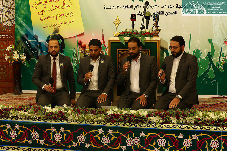 وكان لفرقة إنشاد الجوادين مشاركة بمجموعة من الموشحات الإسلامية صَدحت بها حناجرهم ولاءً لأمير المؤمنين وحُبّاً به وبالأئمة الأطهار من ذريته "عليهم السلام", وللشعر نصيب في الحفل المبارك حيث أجاد الشاعر الأديب جابر الكاظمي بقصيدة ولائية غرّاء بعنوان: (في رحاب علي) مطلعها: