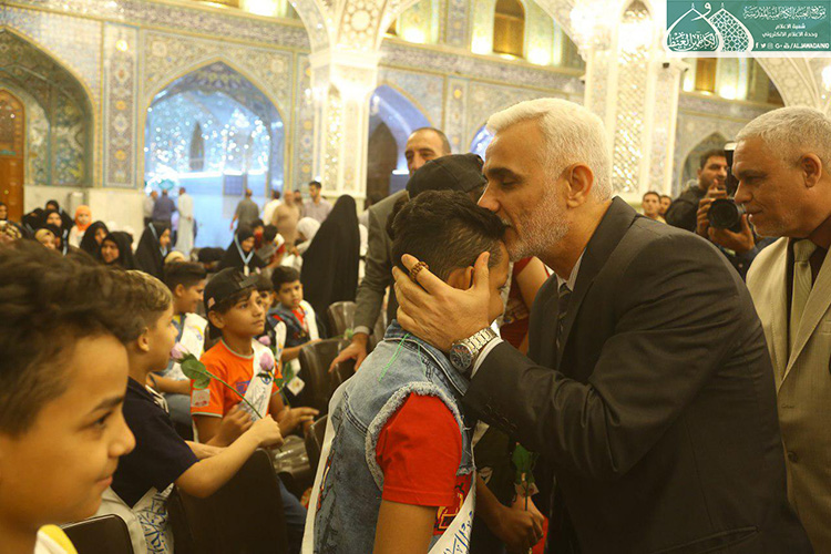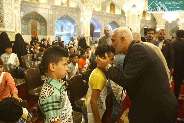 كما تخلّل الحفل الأهازيج والرّدات بمشاركة خادم الجوادين الرادود مصطفى الكناني حيث أضفى روح الفرح والبهجة والسرور في نفوس المؤمنين من زائري الإمامين الجوادين "عليهما السلام"، واختتم الحفل بتكريم عدد من عوائل شهداء حشد الشعبي والاحتفاء بأبنائهم الأيتام بالتعاون والتنسيق مع مؤسسة العين للرعاية الاجتماعية المباركة.