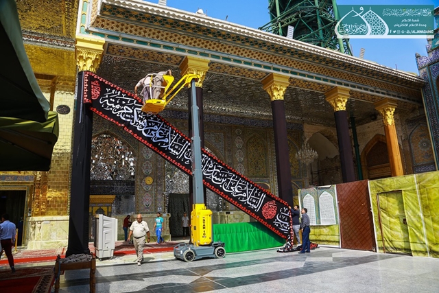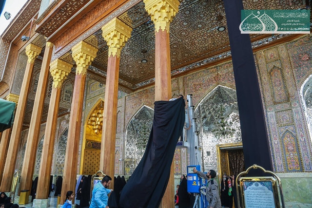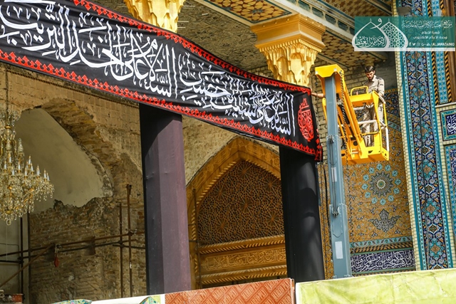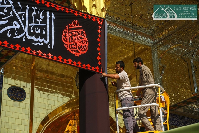 حيث كان لشعبة خدمات العتبة المقدسة / وحدة الخياطة والتطريز وبالتعاون مع قسم العلاقات العامة من تهيئة السوادات ونشر مظاهرالحزن والأسى والكلمات النورانية على أعمدة الطارمات والأواوين وأرجاء العتبة المقدسة كافة، استذكاراً لهذا المصيبة التي أدمت قلوب محبيّ وأتباع أهل البيت "عليهم السلام" في مشارق الأرض ومغاربها.