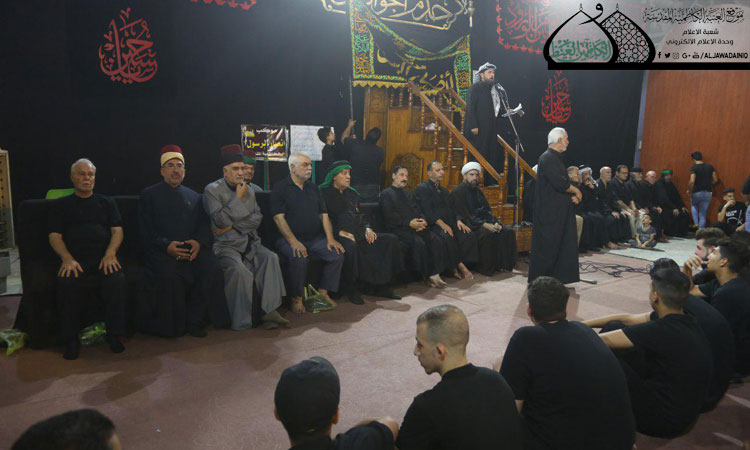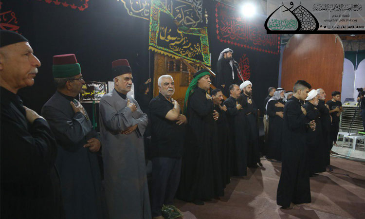 انطلاقا من قول رسول الله "صلى الله عليه وآله وسلم":( إنّ لقتل الحسين حرارة في قلوب المؤمنين لا تبرد أبداً ).. إستقبلت رحاب الصحن الكاظمي الشريف المواكب الحسينية المعزية بذكرى عاشوراء، حيث تجسدت فيها أروع صور الولاء لأهل بيت النبوة "عليهم السلام" وهي تؤدي الشعائر الحسينية، إذ صدحت حناجرالمعزين بعبارات الحزن والأسى وهم يحيون أيام الذكرى الأليمة لاستشهاد أبي الأحرار الإمام الحسين "عليه السلام"، وكان في استقبالهم جمع من خدّام الإمامين الجوادين "عليهما السلام"، لتختتم تلك الشعائر الحسينية بمجلس للعزاء في موكب خدم الإمامين الجوادين "عليهما السلام" في الصحن الشريف من جهة باب المراد، مستذكرين خلاله فاجعة الطف ومأساة كربلاء الخالدة ومواقفها وأحداثها وكلّ ما تعرضت إليه عيالات رسول الله "صلى الله عليه وآله" من مشاهد مروعة يندى لها جبين الإنسانية.