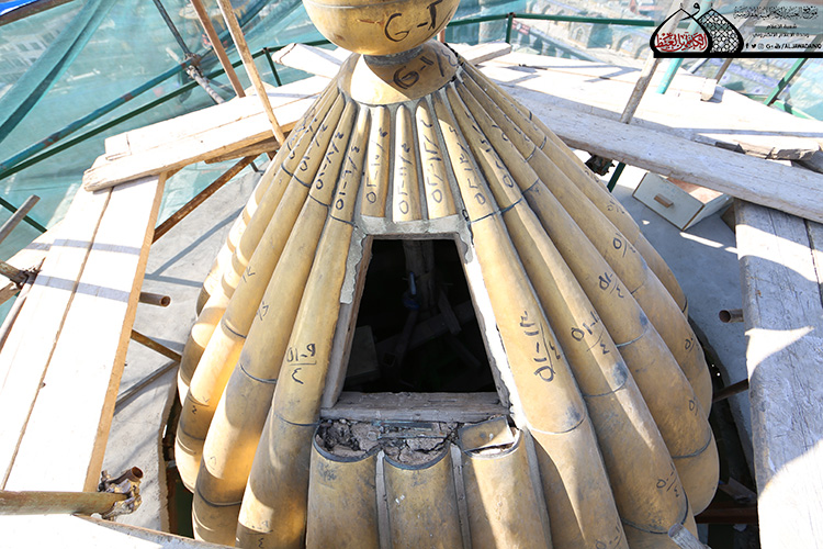 المنارة الشمالية الشرقية في الصحن الكاظمي الشريف تشهد أعمال الإكساء والتذهيب