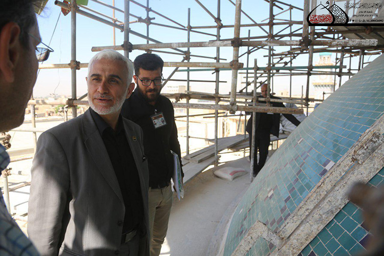 في سياق متصل تفقد السيد الأمين العام مشروع معالجة المنارة الشمالية الشرقية للصحن الكاظمي الشريف لمتابعة آخر التطورات التي يشهدها المشروع مستمعاً إلى شرح تفصيلي لما تم إنجازه في الجزء السفلي من أعمال صبّ ركائز الهيكل الكونكريتي، وصب أسس الجدران المحيطة بالمنارة، وإزالة الطبقات الإكسائية فضلاً عن أعمال المعالجة الإنشائية الأخرى، كما اطلع على أعمال الجزء العلوي للمنارة والذي يشهد عملية إزالة البلاطات الذهبية القديمة.