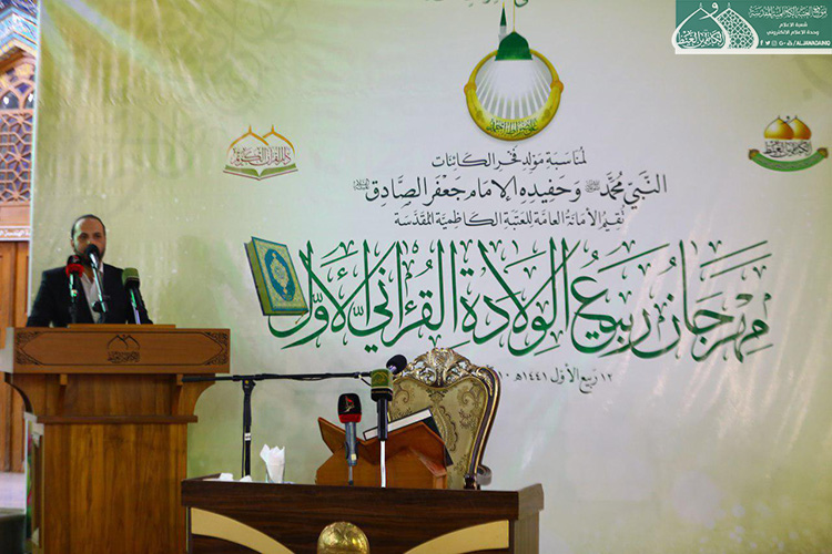 تيمناً بذكرى إشراقة النورَين العظيمَين، والصادقَين المصدّقَين، النبي الأكرم محمد "صلّى الله عليه وآله وسلّم"، وحفيده الإمام السادس جعفر بن محمد الصادق "عليه السلام"، أقامت الأمانة العامة للعتبة الكاظمية المقدسة ـ قسم الشؤون الفكرية والثقافية/ دار القرآن الكريم مهرجان ربيع الولادة القرآني الأول، تحت شعار: (على صراط أحمد)، بحضور الأمين العام للعتبة الكاظمية المقدسة الأستاذ الدكتور حيدر حسن الشمّري، وأعضاء مجلس الإدارة، ومسؤولي المؤسسات القرآنية ونخبة من أساتذة وقراء القرآن الكريم، وجمعٌ غفير من زائري الإمامين الجوادين "عليهما السلام".