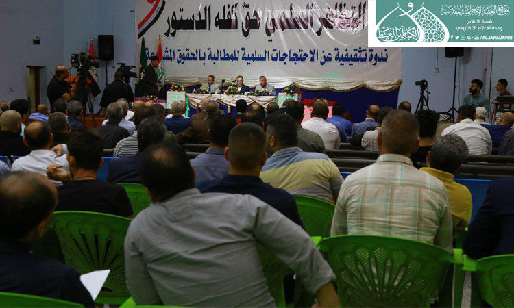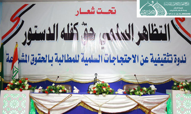 برعاية مباركة من قبل الأمانة العامة للعتبة الكاظمية المقدسة، وتحت شعار: ( التظاهر السلمي حقّ كفله الدستور)، أقيمت الندوة التثقفية عن الاحتجاجات السلمية للمطالبة بالحقوق المشروعة في قاعة المجلس البلدي لقاطع مدينة الصدر، بحضور نائب الأمين العام للعتبة الكاظمية المقدسة المهندس سعد محمد حسن وبرفقته عضوي مجلس الإدارة المهندس جلال علي محمد والقانوني وسام عبد العزيز توفيق، وكوكبة من خدّام الإمامين الجوادين "عليهما السلام"، وعددٍ من الشخصيات الدينية والأكاديمية والاجتماعية وأصحاب الهيئات والمواكب الحسينية ومسؤولي منظمات المجتمع المدني.