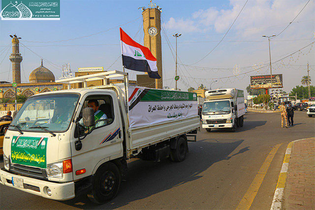 الأمانة العامة للعتبة الكاظمية المقدسة تواصل إرسالها قوافل الدعم اللوجستي إلى المتظاهرين السلميين من ابناء العراق