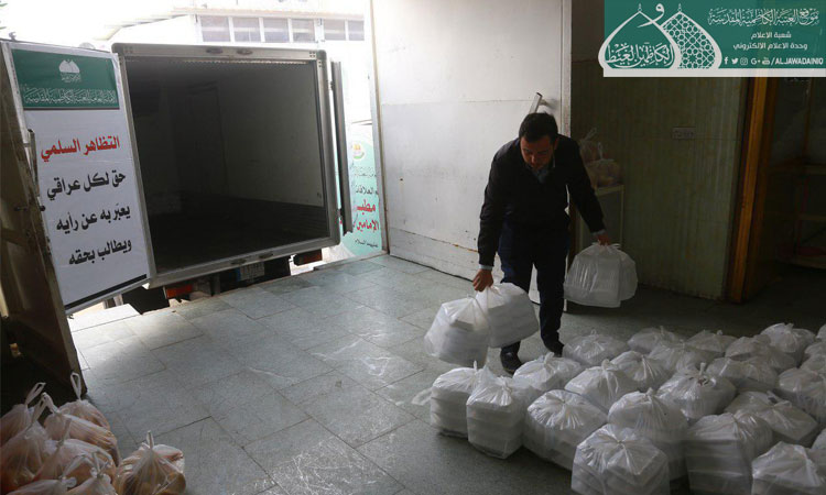 حيث يوفّر مضيف الإمامين الجوادين "عليهما السلام" التابع لقسم العلاقات العامة وجبات الطعام لتوزيعها على المتظاهرين السلميّين، فضلاً عن تجهيز كميات كبيرة من مياه المراد الصحية، والخدمات المختلفة.