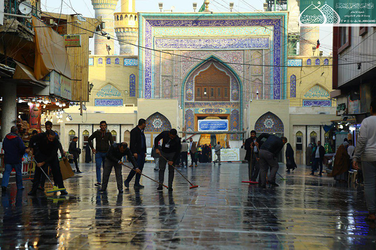 الأمانة العامة للعتبة الكاظمية المقدسة تطلق حملة تنظيف الشوارع المحيطة بالصحن الكاظمي الشريف
