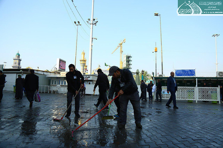 لأجل توفير الخدمات اللازمة للزائرين الكرام والحفاظ على مظهر ورونق وجمالية شوارع مدينة الكاظمية المقدسة وخلق بيئة صحية، وبتوجيه من قبل الأمانة العامة للعتبة الكاظمية المقدسة متمثلة بأمينها العام الأستاذ الدكتور حيدر حسن الشمّري وحرصه على إظهار مدينة الكاظمية المقدسة بكلّ ما يُليق بمكانتها الحضارية والدينية، أطلقت ملاكات شعبة النظافة في العتبة المقدسة حملة التنظيف الأسبوعية لشارعي باب القبلة و باب المراد والمنطقة المحيطة بالصحن الكاظمي الشريف ، حيث شملت تلك الجهود أعمال عدّة منها رفع أكداس النفايات وتفريغها في الحاويات المخصصة فضلاً عن غسل الطرق والشوارع المؤدية للحرم الكاظمي الشريف ويتم ذلك من خلال التعاون والتنسيق مع قسم الآليات في العتبة المقدسة لتوفير العجلات الخدمية والحوضية.