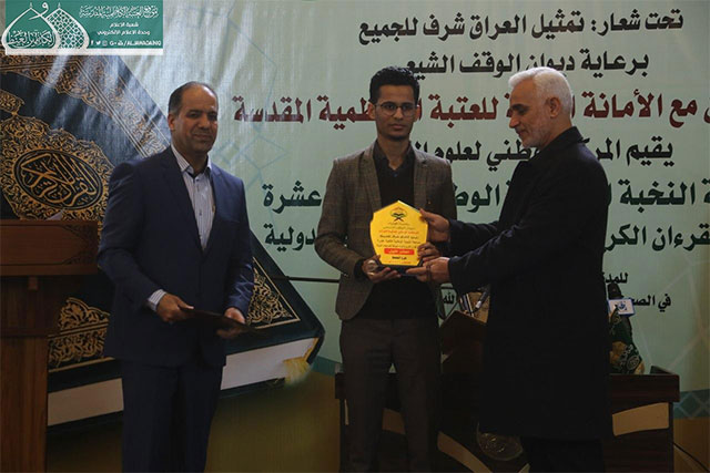 أما الفائزون في فرع التلاوة فكان بالمركز الأول القارئ حسين علي حسين من محافظة بابل، والثاني القارئ ياس فضل جاسم من محافظة الديوانية، ثم في المركز الثالث القارئ فلاح زليف عطية من محافظة المثنى.