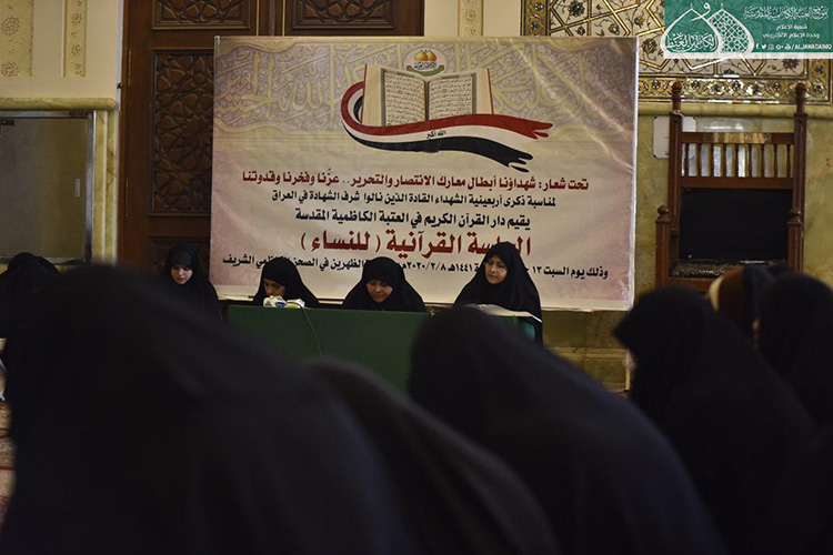 شهدت أروقة الصحن الكاظمي الشريف إقامة جلسات قرآنية " للرجال والنساء" ضمن فعاليات مهرجان الشهداء المركزي الذي أقامته الأمانة العامة للعتبة الكاظمية المقدسة تحت شعار: ( شهداؤنا أبطال معارك الانتصار والتحرير .. عزّنا وفخرنا وقدوتنا) لمناسبة ذكرى أربعينية الشهداء القادة وفي مقدمتهم الحاج المجاهد أبو مهدي المهندس "طيب الله ثراهم" الذين طالتهم يد العدوان الأمريكي الغاشم بحادثة قرب مطار بغداد الدولي.