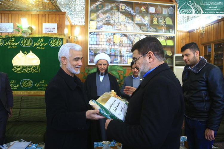 من جانبه قدّم الأمين العام للعتبة الكاظمية المقدسة الراية المباركة التي تحمل النفحات القدسية للإمامين الكاظمين الجوادين "عليهما السلام" مشيداً بهذه الأنفاس الإنسانية متمنياً للحاج مقداد السعد ولجميع الموالين دوام التوفيق والسداد لما فيه ابتغاء مرضاة الله تعالى وأهل بيت النبوة "عليهم السلام".