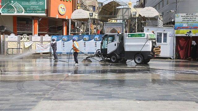 استعداداً لشهر رمضان المبارك العتبة الكاظمية المقدسة تُطلق حملة الإدامة لتنظيف الشوارع المحيطة بالصحن الكاظمي الشريف