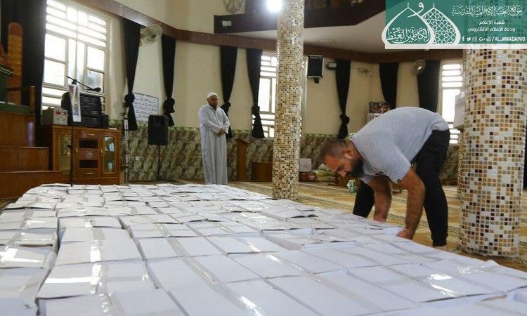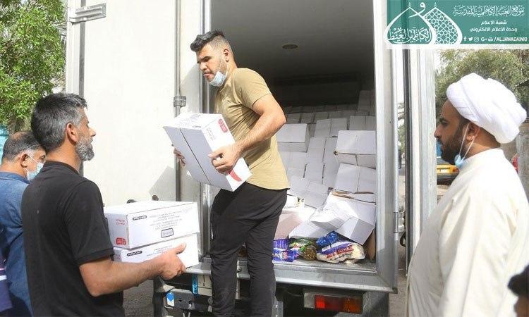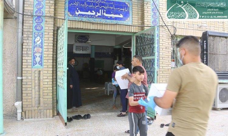 الأمانة العامة للعتبة الكاظمية المقدسة تواصل مدّ يد العون للعوائل المتضررة جرّاء الحظر الصحي من خلال حملة " جود الجوادين"