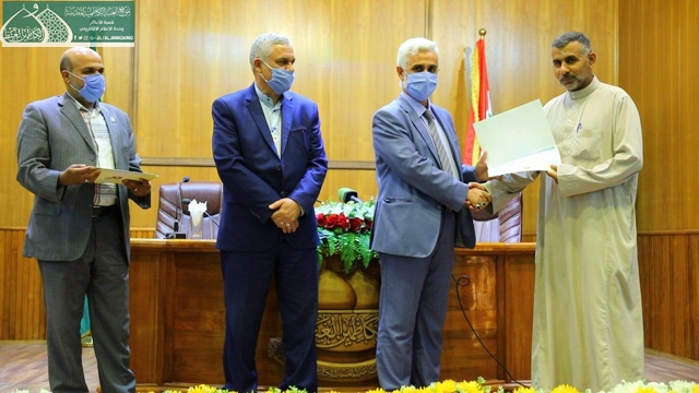 احتفى الأمين العام للعتبة الكاظمية المقدسة الأستاذ الدكتور حيدر حسن الشمّري بحضور أعضاء مجلس الإدارة بقرّاء العتبة المقدسة من خلال دعوتهم لمأدبة الأفطار وتكريمهم تعبيراً عن شكره بجهودهم الطيبة مع رحيل شهر رمضان المبارك شهر ربيع القرآن والفضل والإنعام، الذي كان للمؤمنين روضة وأنساً وللغافلين قيداً وحبساً، المشاركين في الختمة القرآنية المرتلة التي استمرت على مدى الشهر الكريم بواقع جزء واحد في كلّ يوم والتي أهدي ثوابها لشهداء العراق، فضلاً عن إحيائهم لليالي القدر المباركة وقراءة الأدعية المخصوصة لأعمال الشهر الفضيل.