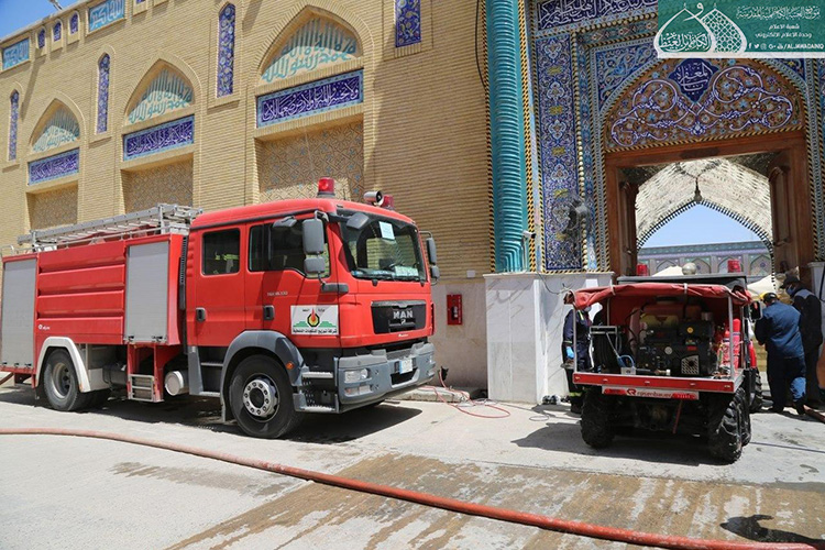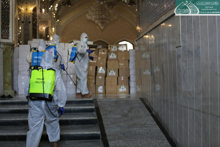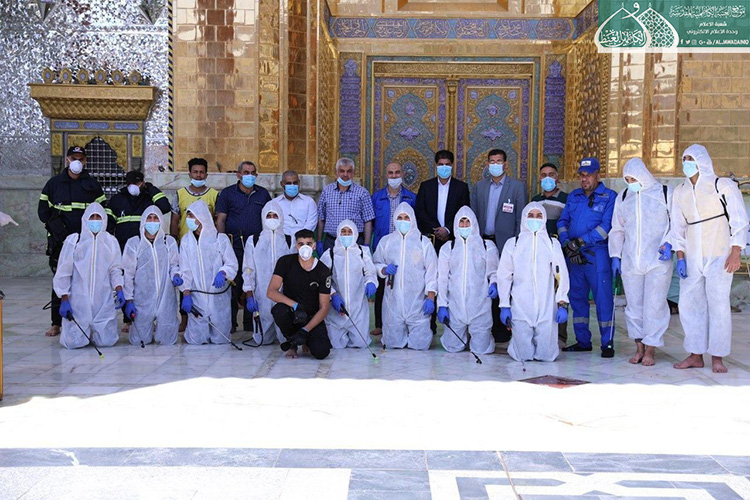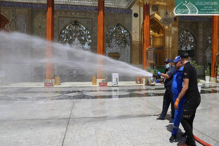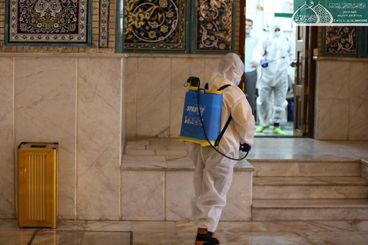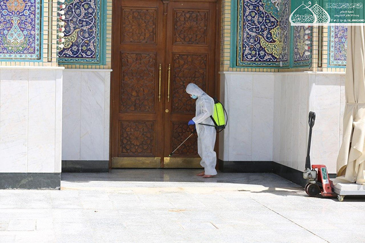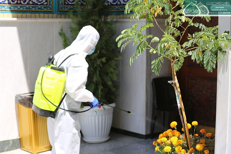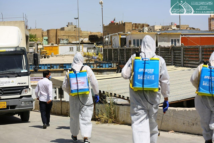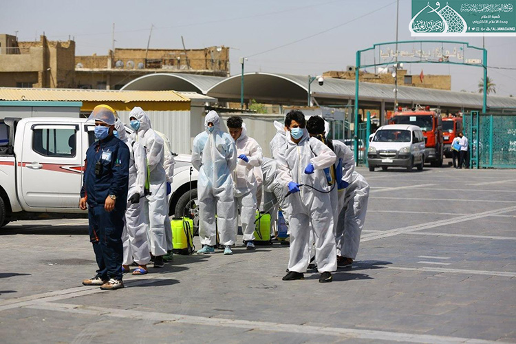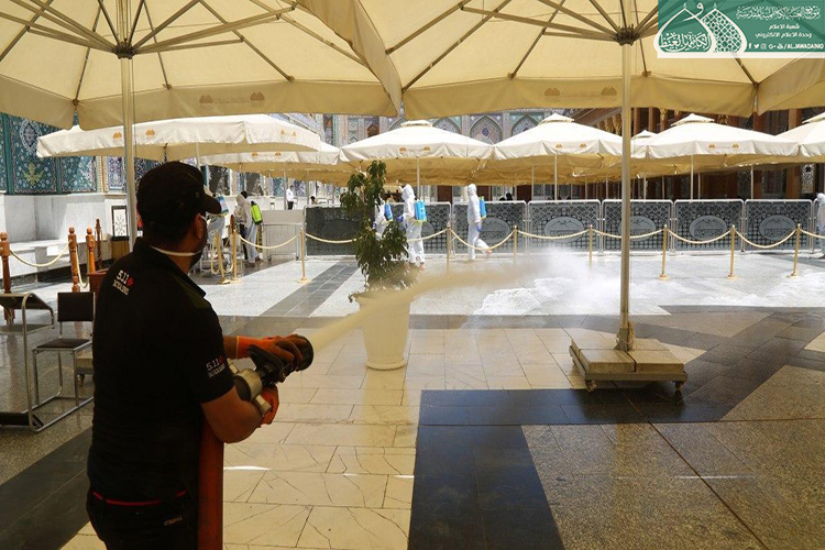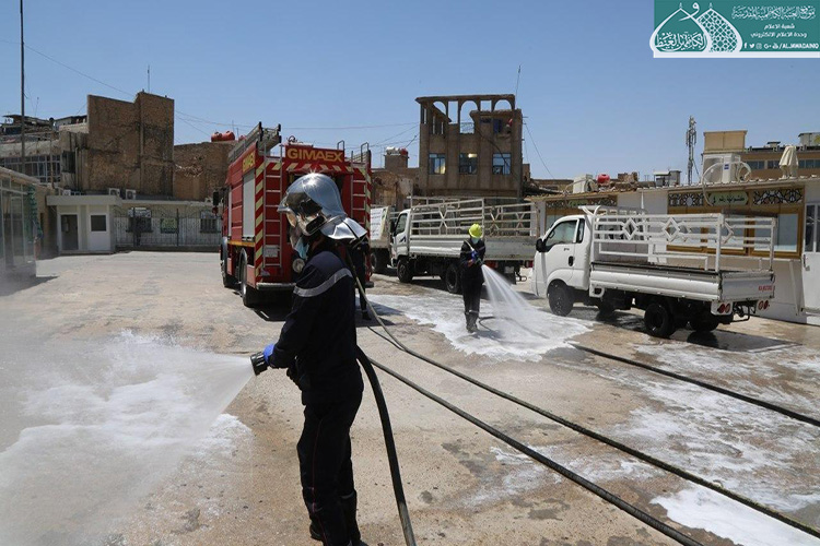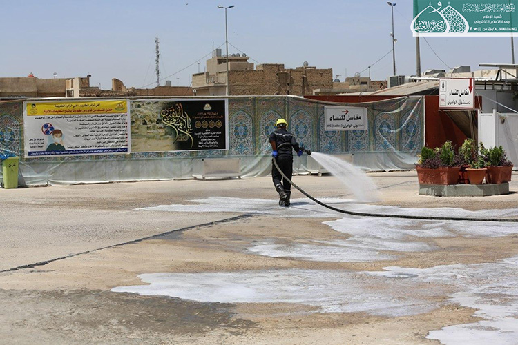 استناداً إلى توجيهات الأمين العام للعتبة الكاظمية المقدسة الأستاذ الدكتور حيدر حسن الشمّري بتواصل الإجراءات الاحتياطية، وخطط التدابير الوقائية لتفادي مخاطر انتقال فيروس كورونا، نظّمت فرق وحدة السلامة العامة في العتبة الكاظمية المقدسة بالتعاون مع مديرية توزيع المنتجات النفطية، ومتطوعي مؤسسة اليوم الموعود حملات تعفير واسعة شهدتها مفاصل الصحن الكاظمي الشريف ومحيطه الخارجي من خلال استخدام المواد الطبية المطهرة، وذلك لـتأمين الحماية اللازمة والحفاظ على صحة وسلامة خدّام الإمامين الكاظمين الجوادين "عليهما السلام" وزائريهما الكرام .