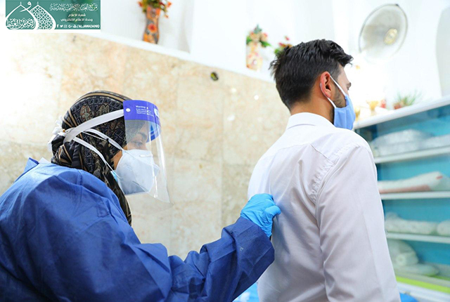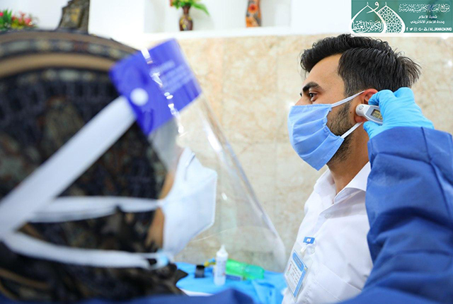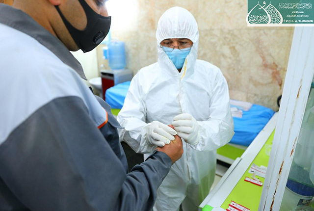 بتوجيه ومتابعة مباشرة من قبل الأمين العام للعتبة الكاظمية المقدسة الأستاذ الدكتور حيدر حسن الشمّري، ولأجل الحفاظ على صحة وسلامة خدّام الإمامين الكاظمين الجوادين "عليهما السلام"، نظّمت الأمانة العامة للعتبة الكاظمية المقدسة، وبالتعاون والتنسيق مع فريق دائرة صحة بغداد/ الكرخ، قطاع الكاظمية حملة الفحوصات الأولية والمسح الحراري وأخذ العينات لخدّام الإمامين الكاظمين الجوادين "عليهما السلام"، وما هي إلا إجراءات وقائية لتعزيز الأمن الصحي، وفرز الحالات المشتبه بها والملامسة واكتشافها مبكراً، فضلاً عن توسيع دائرة التقصي لدرء مخاطر انتشار فيروس كورونا المستجد " كـوفيد -19 " .