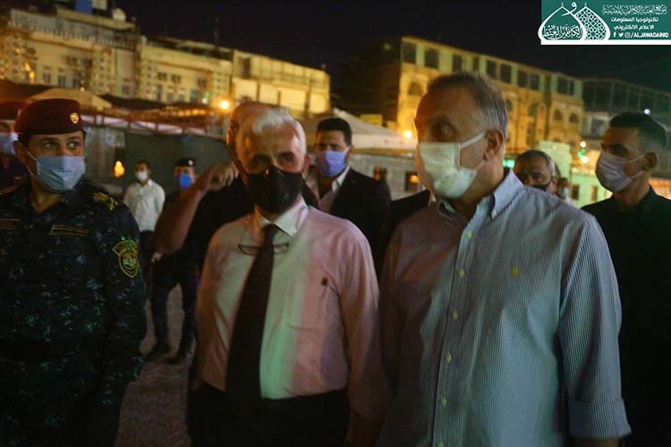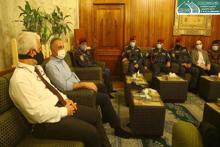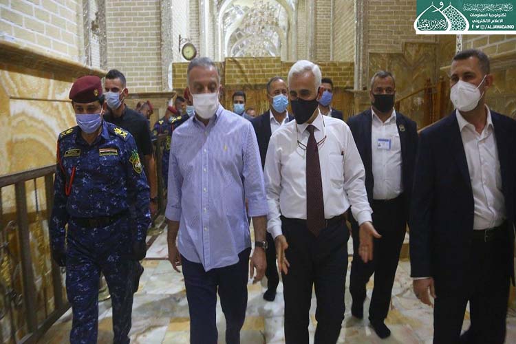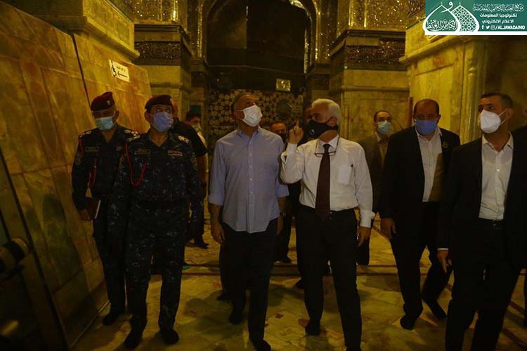 تشرّف بزيارة الإمامين الهمامين موسى بن جعفر الكاظم ومحمد بن علي الجواد "عليهما السلام" دولة رئيس مجلس الوزراء الأستاذ مصطفى الكاظمي، وكان في استقباله الأمين العام للعتبة الكاظمية المقدسة الأستاذ الدكتور حيدر حسن الشمّري، وأعضاء مجلس الإدارة الموقّر بكلّ حفاوة وترحيب وتقديم التهاني لمناسبة عيد الأضحى المبارك، وشهد اللقاء تبادل أطراف الحديث عن واقع العتبة المقدسة واستعراض الخطوات العملية للأمانة العامة للعتبة الكاظمية المقدسة على المستويين الخدمي والعمراني، فضلاً عن الإشارة إلى بعض الجوانب التي تسعى لها جاهدة في الارتقاء بمستوى الخدمة، كما وتم مناقشة الإجراءات الصحية الوقائية الواجب اتباعها حيث شددت العتبة الكاظمية المقدسة اجراءاتها الصحية الوقائية منذ المرحلة الاولى لتفشي فايروس كورونا واكدت على ضرورة تشديد تلك الاجراءات ووجوب التزام المواطنين بتعليمات وزارة الصحة حفاظاً على صحة وسلامة المواطن والمجتمع.